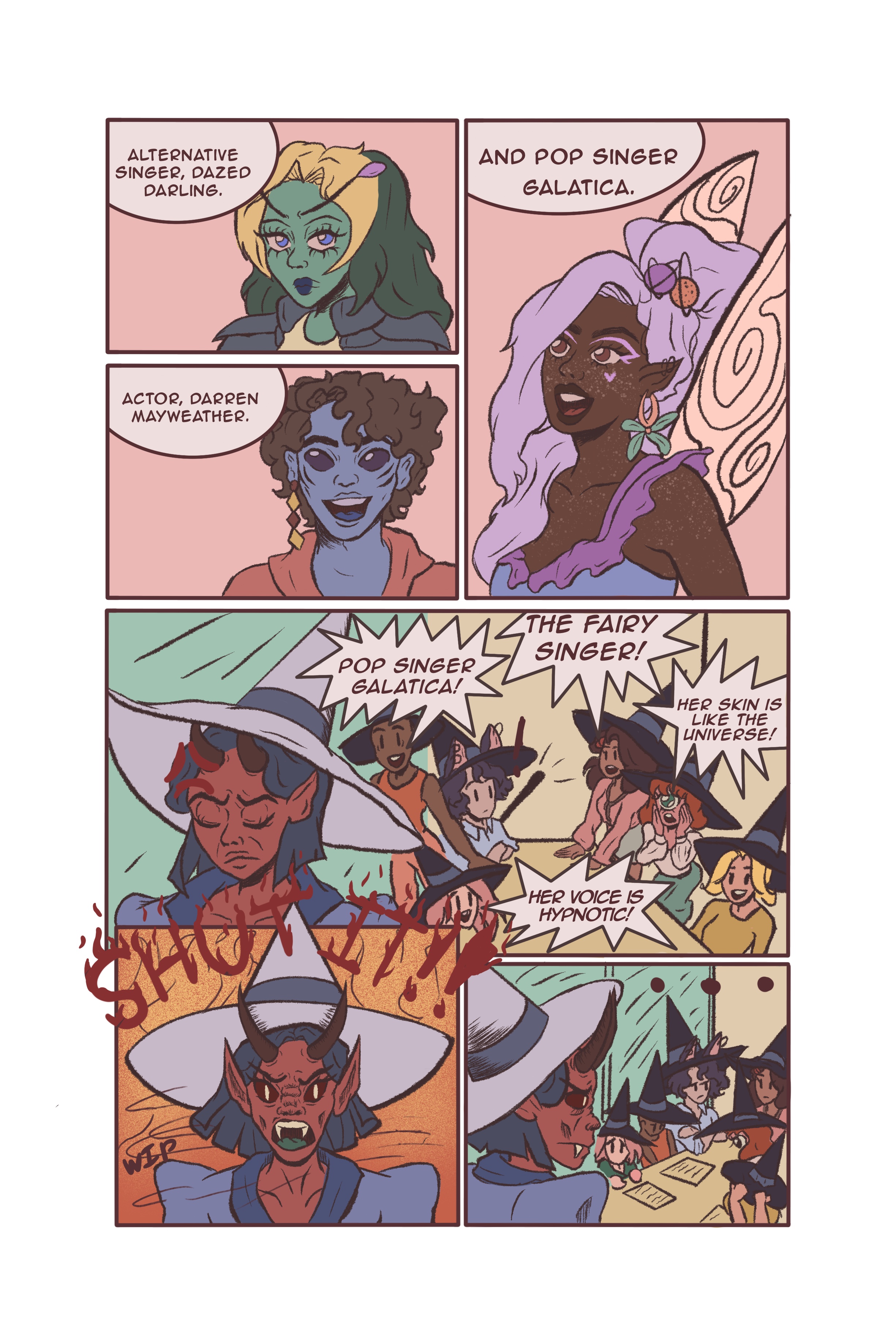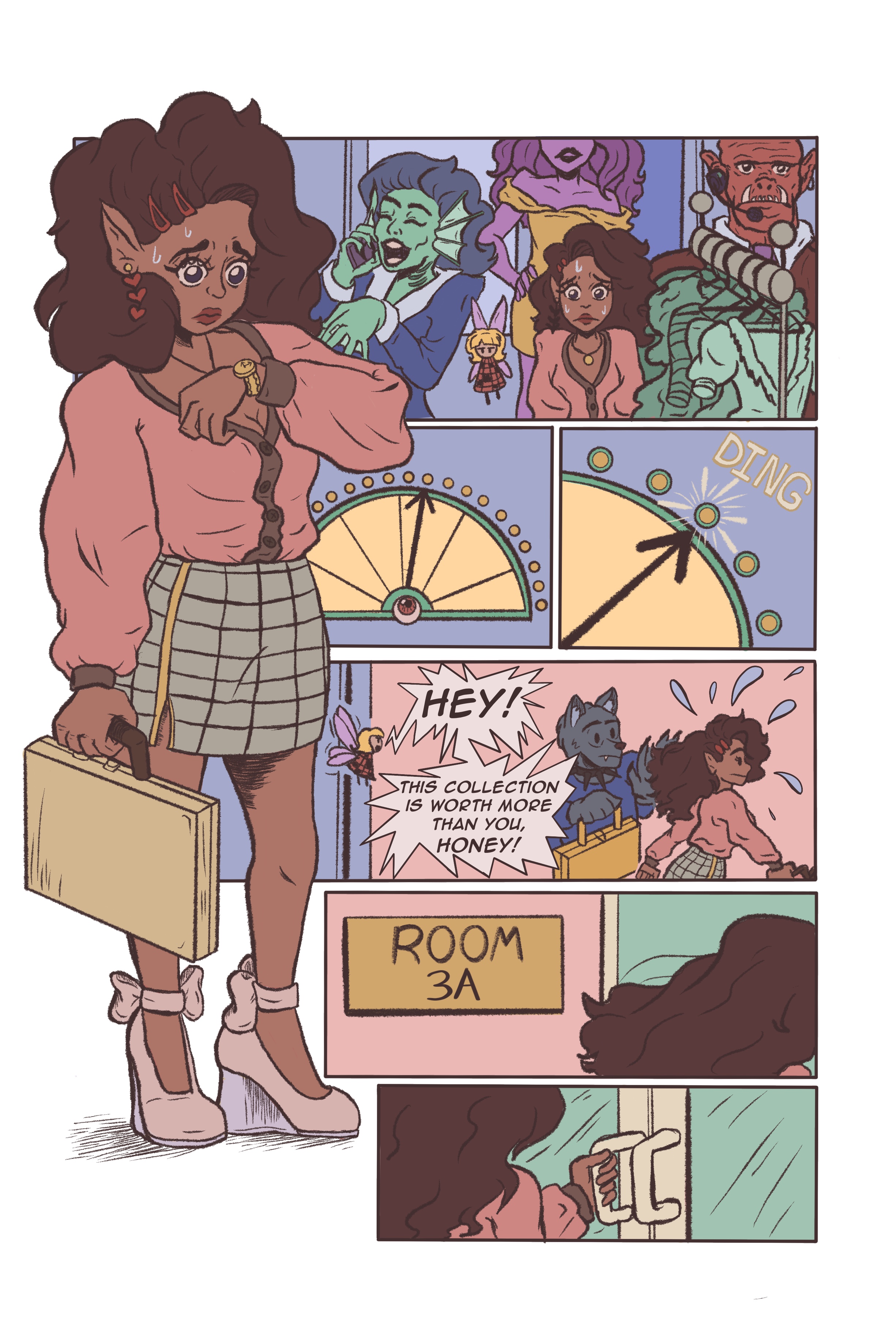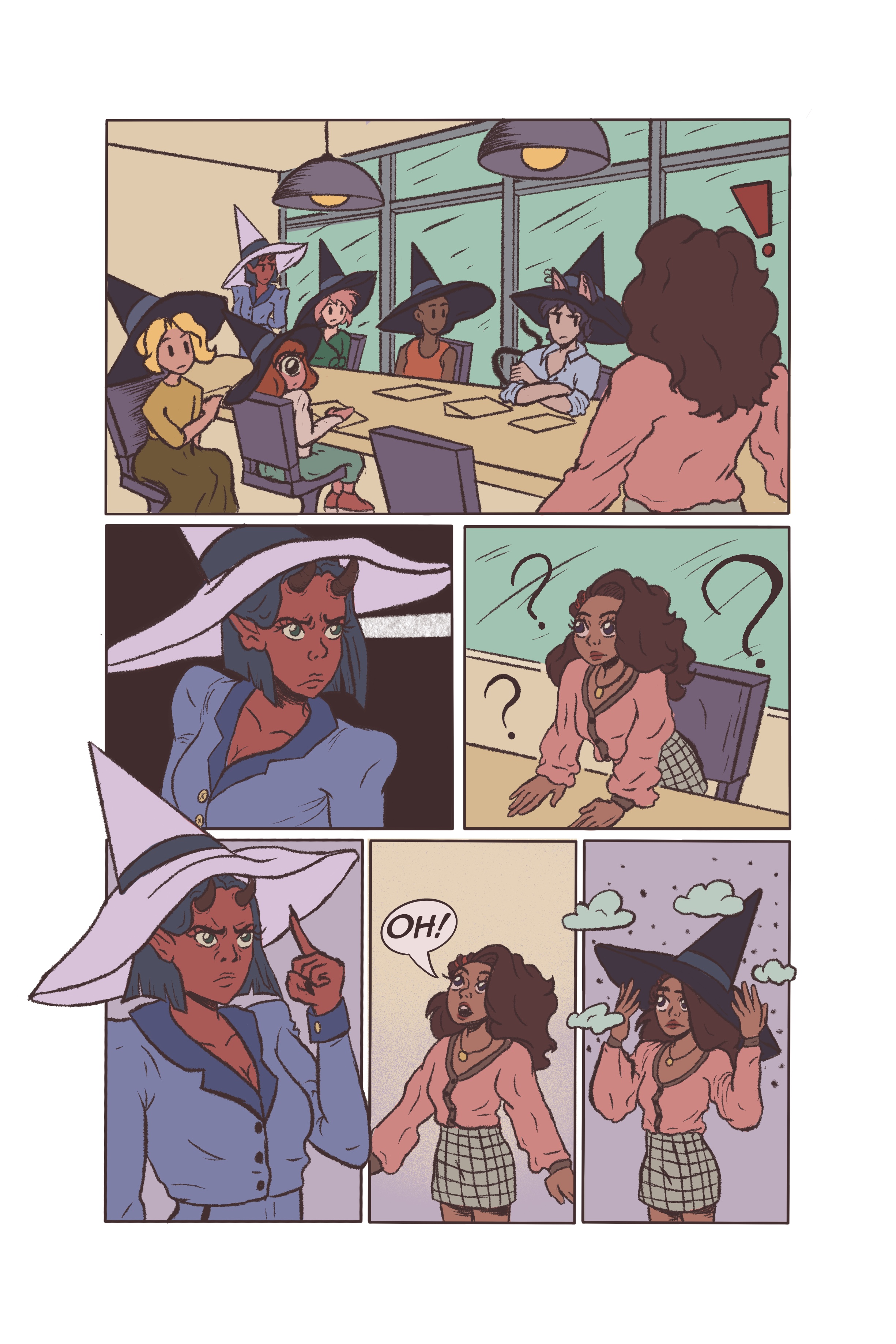 This is a 6 page comic set in a modern day fantasy New York fashion office. My main character, Fey, has been tasked in a big project, but is put together with her rival, Dean.